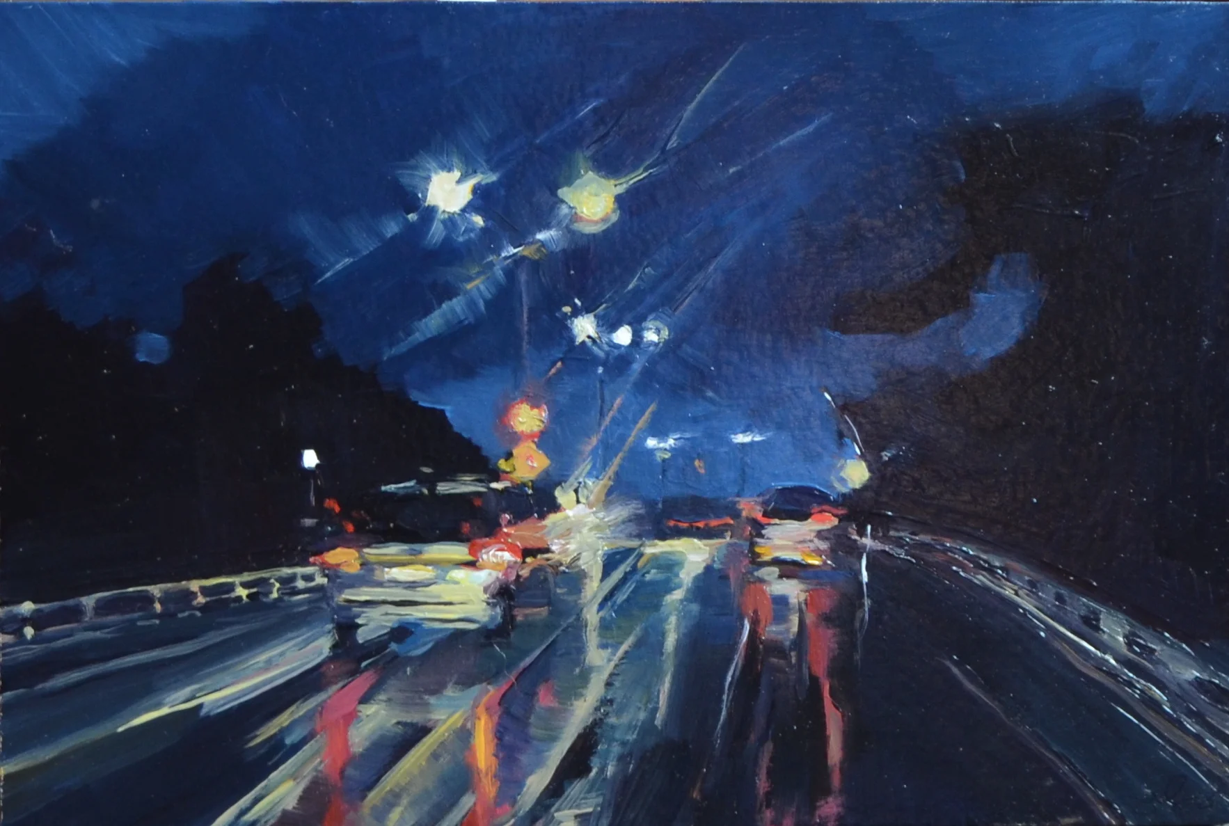 Taillights. 2017. Oil on Panel. 8x 12 inches.