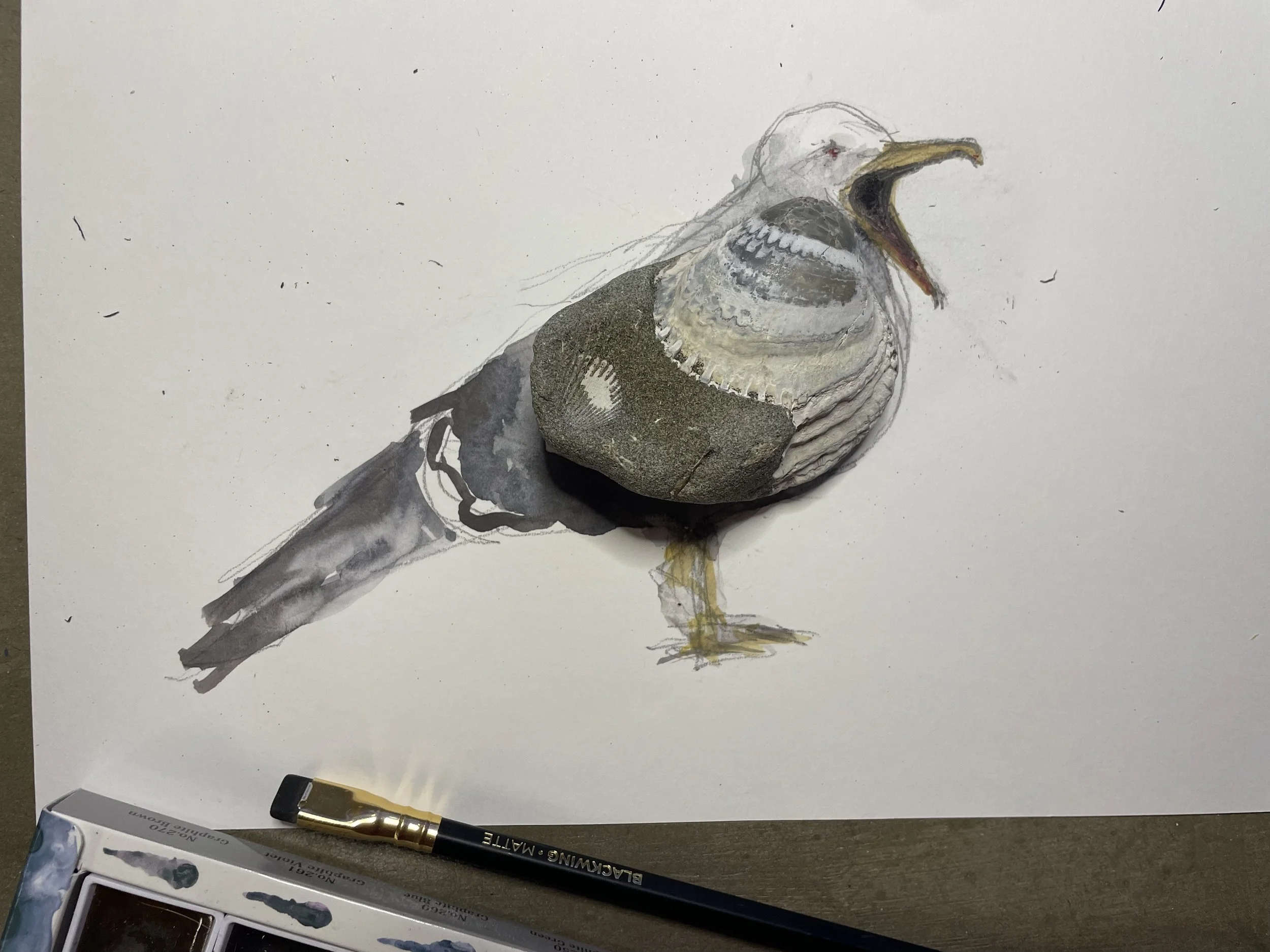 fossilized clam in sandstone becomes a screaming seagull